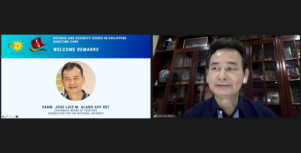 Organized by the Foundation for the National Interest, together with the UP Institute for Maritime Affairs and Law of the Sea, with the support of The Asia Foundation and Amador Research Services, the third installment of the "Kwentong Mandaragat" webinar series was held on November 26, 2020. The third webinar discussed the issue of defense and security issues in Philippine maritime zones. The discussants of the webinar featured Mr. Tony Long, CEO of the Global Fishing Watch, Dr. Asyura Salleh, Fellow at the Pacific Forum, and Flag Officer-in-Command of the Philippine Navy, VAdm. Giovanni Bacordo PN. Mr. Long explained how trends and patterns from accumulated national data on fishing can help detect anomalous maritime activities. Dr. Salleh centered her discussion around traditional and non-traditional maritime security issues persisting along the southern borders of the Philippines, Malaysia, and Indonesia. VAdm. Bacordo provided a comprehensive discussion on the state of the Philippines' efforts in addressing external maritime concerns. The webinar was attended by more than 80 individuals from the academe, private sector, security establishment, and public sector, nationwide. Screenshots of the event found below.
